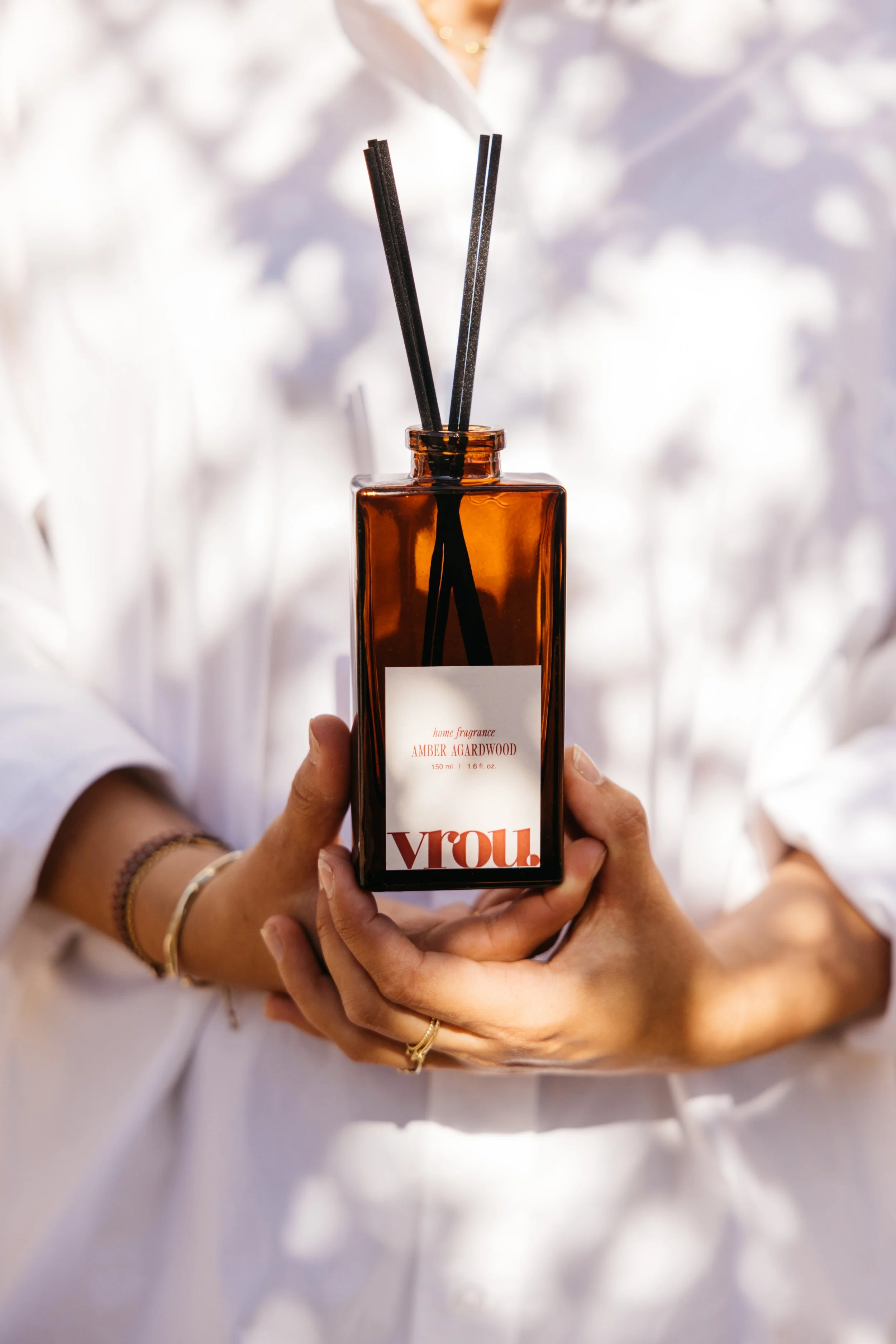 ยป packaging and labels in Indesign for branded fragrance diffusers for Vrou, a multi-brand fashion and accessories store for contemporary women as part of their rebranding and new store opening โ this project is part of a collaboration with Factorie agency.